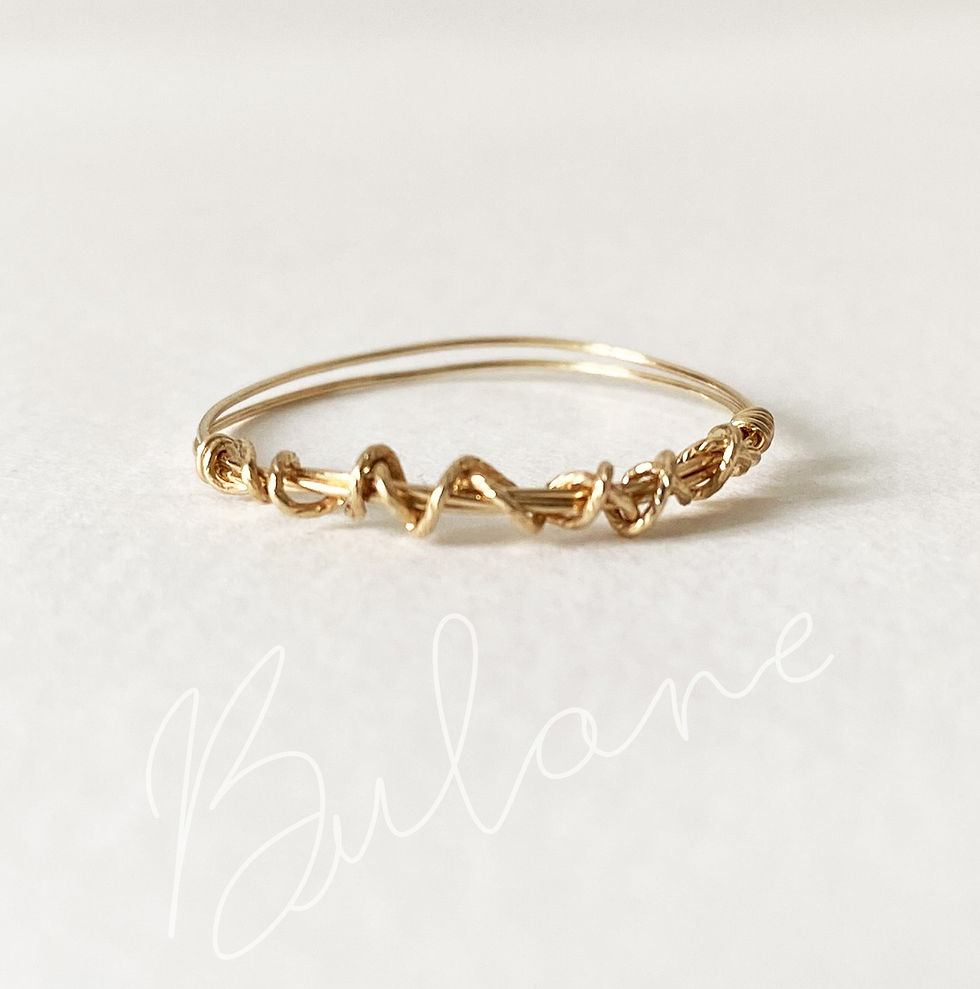 Ce matériau est utilisé aussi bien pour le fil (bagues et bracelets) que pour les chaînes et les attaches. Le gold-filled est un métal doré de qualité exceptionnelle, encore peu connu en France. Ce procédé, originaire des États-Unis, consiste à appliquer une couche solide d'or 14 carats sur une base métallique, généralement du laiton, en utilisant chaleur et pression. Cette méthode constitue une alternative avantageuse à l'or massif.